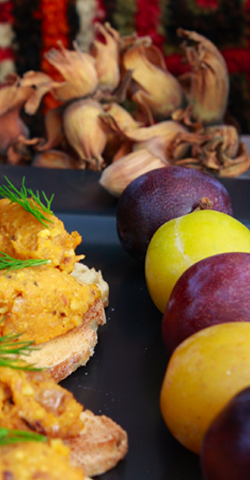 Visual enhancement brings a deeper dimension to the whole experience. Original and artistic garnishes of seasonal fruit, flowers and foliage complement tables and canapé presentations.